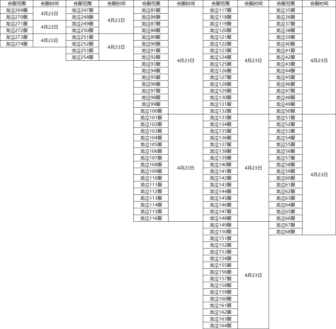 为了给大家带来更好的游戏体验,《龙泣》将对部分区服进行合服操作,合服期间将无法登陆游戏,为避免造成不必要的损失,请您提前下线,合理安排游戏时间!